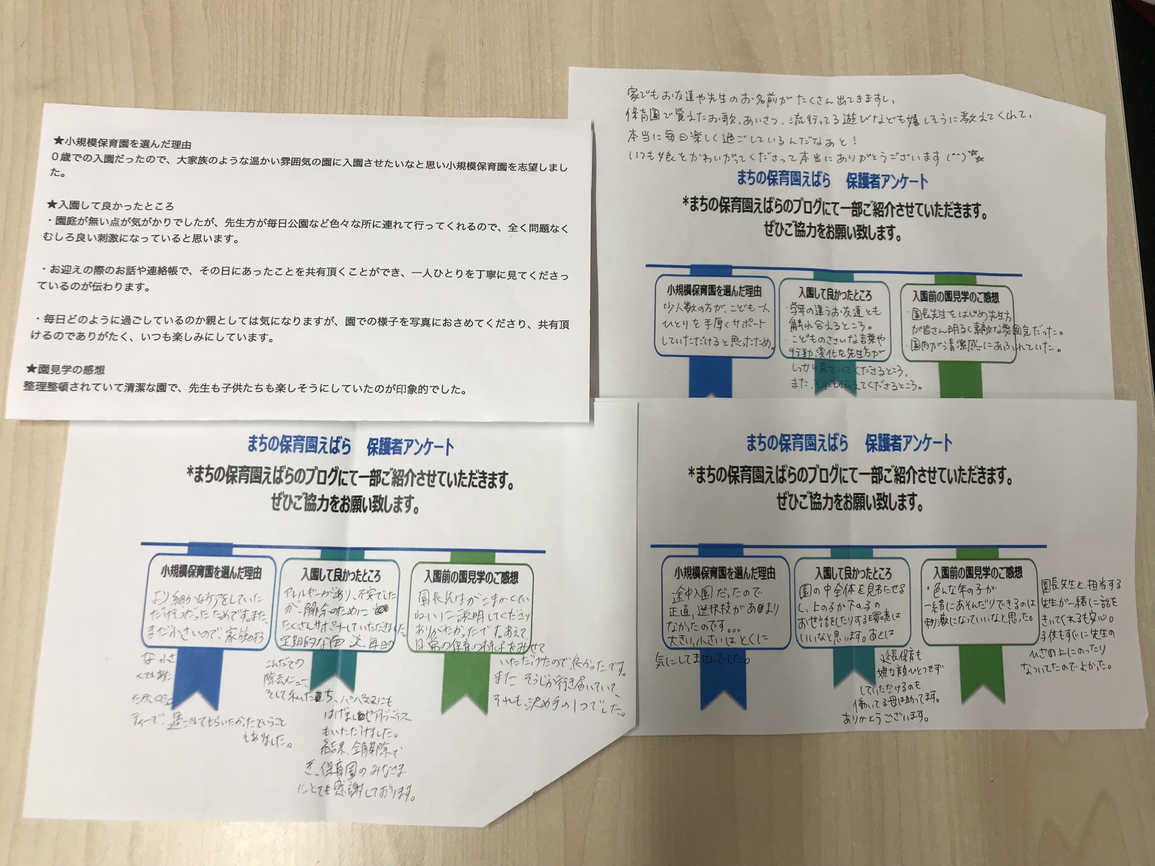 入園させたいなと思い小規模保育園を志望しました。